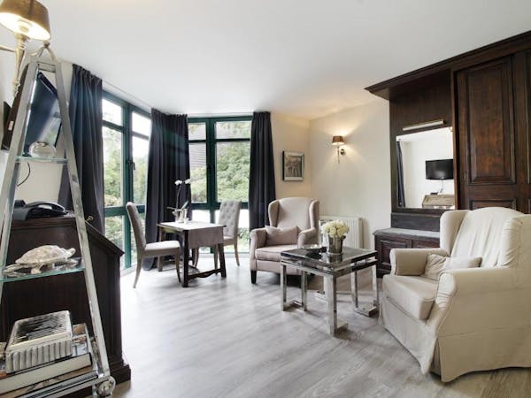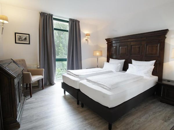 Welcome to our Deluxe Junior Suite! Immerse yourself in an exquisite experience of luxury accommodation. The generously designed suite offers an elegant and stylish ambiance with a separate living area and first-class amenities. Enjoy the breathtaking view of the surrounding nature and indulge in our attentive service. The Deluxe Junior Suite is the perfect retreat for discerning travelers seeking comfort and relaxation. Experience your stay in Viersen at the highest level in our exclusive Deluxe Junior Suite.