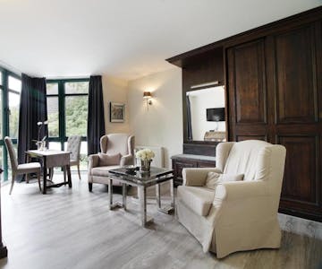Welcome to our Deluxe Junior Suite! Immerse yourself in an exquisite experience of luxury accommodation. The generously designed suite offers an elegant and stylish ambiance with a separate living area and first-class amenities. Enjoy the breathtaking view of the surrounding nature and indulge in our attentive service. The Deluxe Junior Suite is the perfect retreat for discerning travelers seeking comfort and relaxation. Experience your stay in Viersen at the highest level in our exclusive Deluxe Junior Suite.